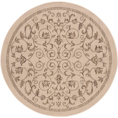 Courtyard CY1906 UV & Stain Resistant Non-Shedding Power Loomed Indoor/Outdoor Area Rug - Natural/Brown - 5'3" Round - Safavieh