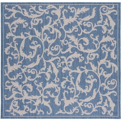 Courtyard CY2098 UV & Stain Resistant Non-Shedding Power Loomed Indoor/Outdoor Area Rug - Natural/Blue - 7'10"x7'10" - Safavieh
