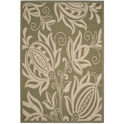 Courtyard CY2098 UV & Stain Resistant Non-Shedding Power Loomed Indoor/Outdoor Area Rug - Olive/Natural - 6'7"x9'6" - Safavieh