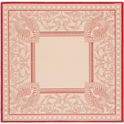 Courtyard CY2099 UV & Stain Resistant Non-Shedding Power Loomed Indoor/Outdoor Area Rug - Natural/Red - 7'10"x7'10" - Safavieh