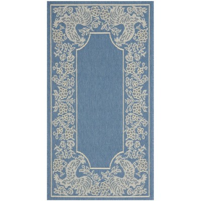 Courtyard CY2653 UV & Stain Resistant Non-Shedding Power Loomed Indoor/Outdoor Accent Rug - Blue/Natural - 2'7"x5' - Safavieh