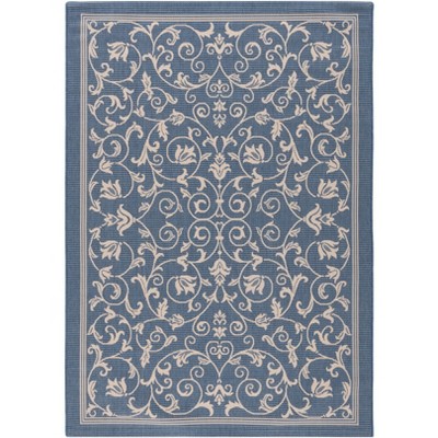 Courtyard CY2653 UV & Stain Resistant Non-Shedding Power Loomed Indoor/Outdoor Accent Rug - Blue/Natural - 4'x5'7" - Safavieh