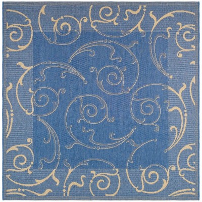 Courtyard CY2653 UV & Stain Resistant Non-Shedding Power Loomed Indoor/Outdoor Area Rug - Blue/Natural - 7'10"x7'10" - Safavieh