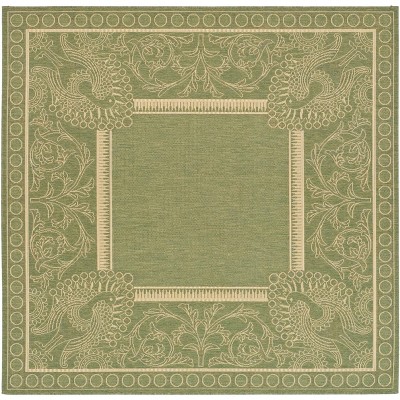Courtyard CY2663 UV & Stain Resistant Non-Shedding Power Loomed Indoor/Outdoor Area Rug - Olive/Natural - 7'10"x7'10" - Safavieh