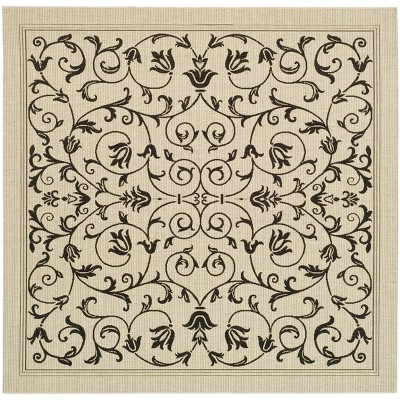 Courtyard CY2663 UV & Stain Resistant Non-Shedding Power Loomed Indoor/Outdoor Area Rug - Sand/Black - 7'10"x7'10" - Safavieh