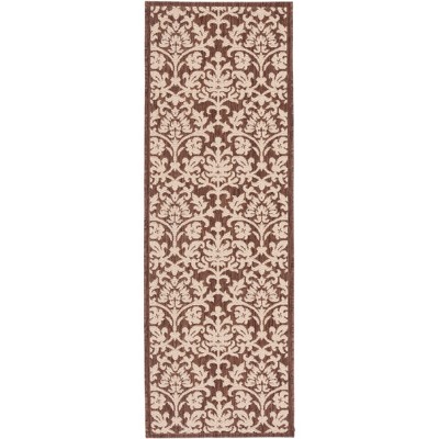Courtyard CY2663 UV & Stain Resistant Non-Shedding Power Loomed Indoor/Outdoor Runner Rug - Chocolate/Natural - 2'3"x14' - Safavieh