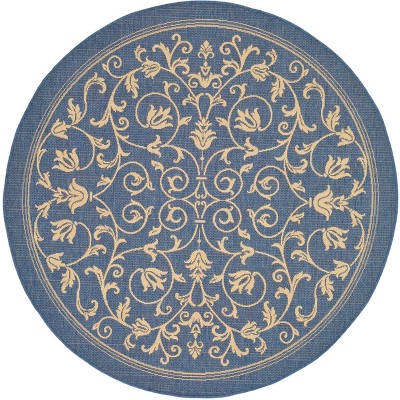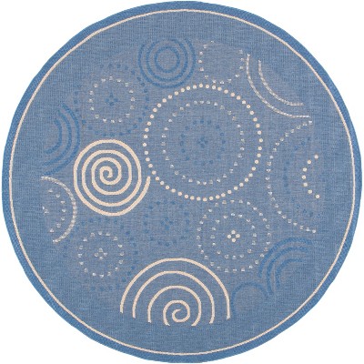 Courtyard CY2665 UV & Stain Resistant Non-Shedding Power Loomed Indoor/Outdoor Area Rug - Blue/Natural - 6'7" Round - Safavieh