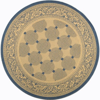Courtyard CY2665 UV & Stain Resistant Non-Shedding Power Loomed Indoor/Outdoor Area Rug - Natural/Blue - 5'3" Round - Safavieh