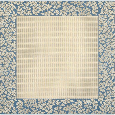 Courtyard CY2665 UV & Stain Resistant Non-Shedding Power Loomed Indoor/Outdoor Area Rug - Natural/Blue - 6'7"x6'7" - Safavieh