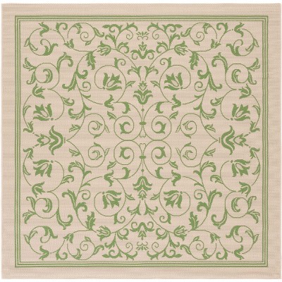 Courtyard CY2665 UV & Stain Resistant Non-Shedding Power Loomed Indoor/Outdoor Area Rug - Natural/Olive - 6'7"x6'7" - Safavieh