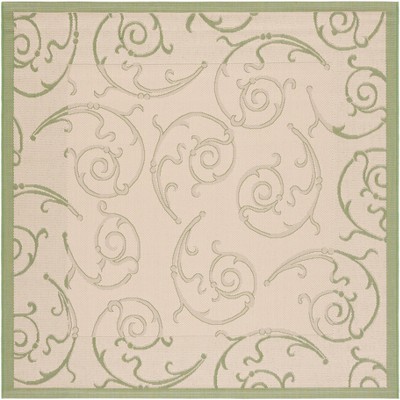 Courtyard CY2720 UV & Stain Resistant Non-Shedding Power Loomed Indoor/Outdoor Area Rug - Natural/Olive - 7'10"x7'10" - Safavieh