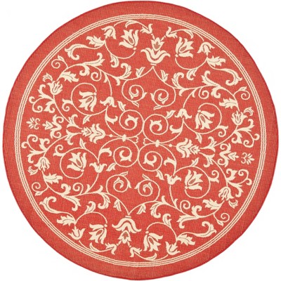 Courtyard CY2720 UV & Stain Resistant Non-Shedding Power Loomed Indoor/Outdoor Area Rug - Red/Natural - 5'3" Round - Safavieh
