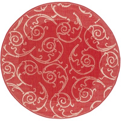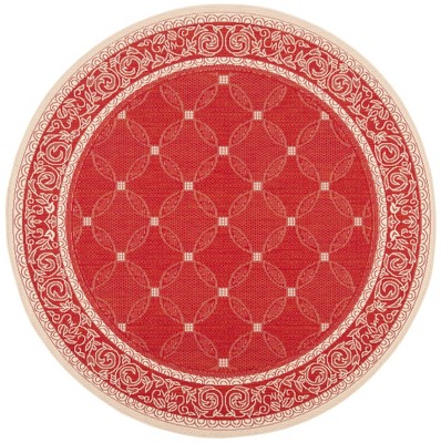 Courtyard CY2720 UV & Stain Resistant Non-Shedding Power Loomed Indoor/Outdoor Area Rug - Red/Natural - 6'7" Round - Safavieh