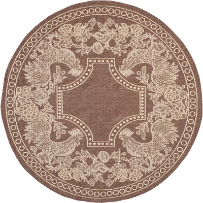 Courtyard CY2914 UV & Stain Resistant Non-Shedding Power Loomed Indoor/Outdoor Area Rug - Chocolate/Natural - 5'3" Round - Safavieh