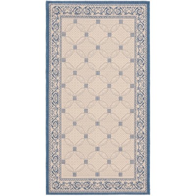 Courtyard CY2961 UV & Stain Resistant Non-Shedding Power Loomed Indoor/Outdoor Accent Rug - Natural/Blue - 2'7"x5' - Safavieh