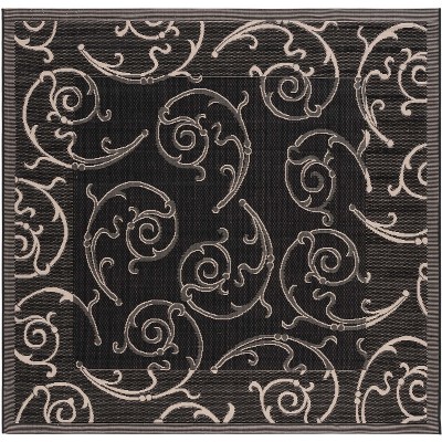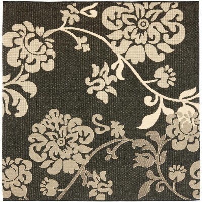 Courtyard CY2961 UV & Stain Resistant Non-Shedding Power Loomed Indoor/Outdoor Area Rug - Black/Sand - 6'7"x6'7" - Safavieh