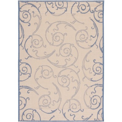 Courtyard CY2961 UV & Stain Resistant Non-Shedding Power Loomed Indoor/Outdoor Area Rug - Natural/Blue - 5'3"x7'7" - Safavieh