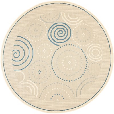 Courtyard CY2961 UV & Stain Resistant Non-Shedding Power Loomed Indoor/Outdoor Area Rug - Natural/Blue - 6'7" Round - Safavieh