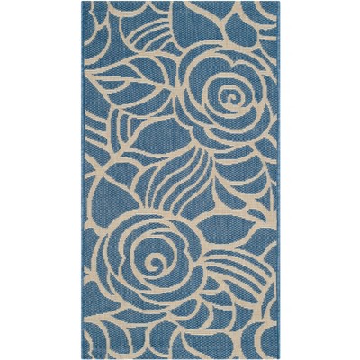 Courtyard CY2965 Power Loomed Indoor/Outdoor Accent Rug - Natural/Blue - 2'x3'7" - Safavieh.