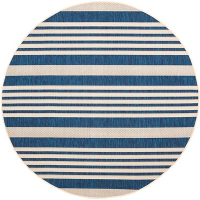 Courtyard CY2965 UV & Stain Resistant Non-Shedding Power Loomed Indoor/Outdoor Area Rug - Blue/Natural - 5'3" Round - Safavieh