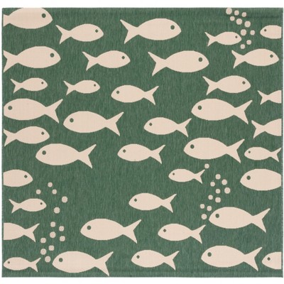 Courtyard CY2965 UV & Stain Resistant Non-Shedding Power Loomed Indoor/Outdoor Area Rug - Olive/Natural - 6'7"x6'7" - Safavieh