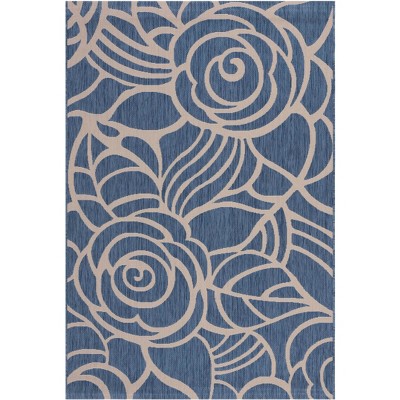 Courtyard CY2965 UV & Stain Resistant Non-Shedding Power Loomed Indoor/Outdoor Runner Rug - Blue/Natural - 2'3"x12' - Safavieh