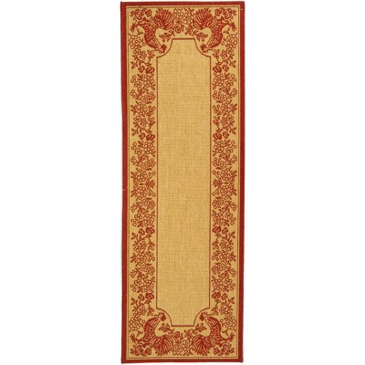 Courtyard CY2965 UV & Stain Resistant Non-Shedding Power Loomed Indoor/Outdoor Runner Rug - Natural/Red - 2'3"x10' - Safavieh