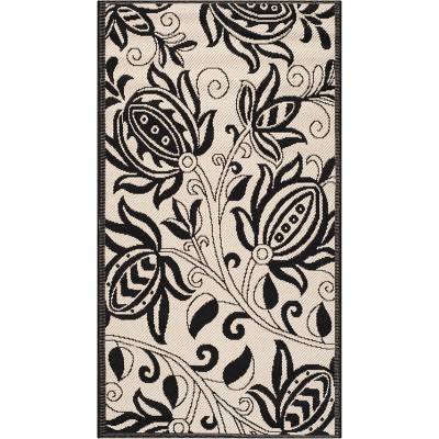 Courtyard CY2996 UV & Stain Resistant Non-Shedding Power Loomed Indoor/Outdoor Accent Rug - Sand/Black - 2'7"x5' - Safavieh