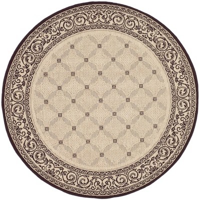 Courtyard CY2996 UV & Stain Resistant Non-Shedding Power Loomed Indoor/Outdoor Area Rug - Sand/Black - 6'7" Round - Safavieh