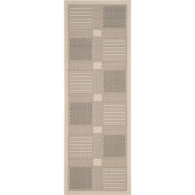 Courtyard CY2996 UV & Stain Resistant Non-Shedding Power Loomed Indoor/Outdoor Runner Rug - Sand/Black - 2'3"x6'7" - Safavieh