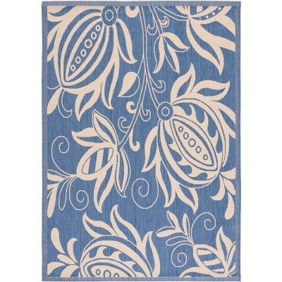 Courtyard CY3305 Power Loomed Indoor and Outdoor Area Rug - Blue/Natural - 5'3"x7'7" - Safavieh