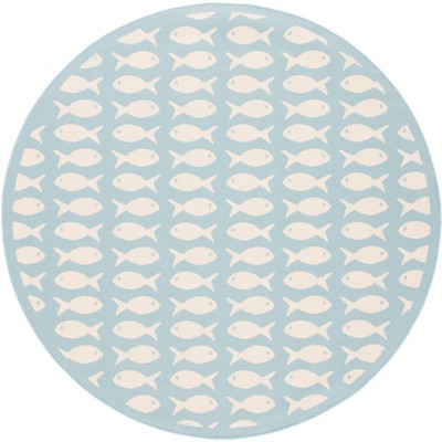Courtyard CY6012 UV & Stain Resistant Non-Shedding Power Loomed Indoor/Outdoor Area Rug - Aqua/Beige - 5'3" Round - Safavieh