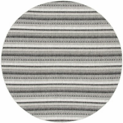 Courtyard CY6012 UV & Stain Resistant Non-Shedding Power Loomed Indoor/Outdoor Area Rug - Black/Beige - 6'7" Round - Safavieh