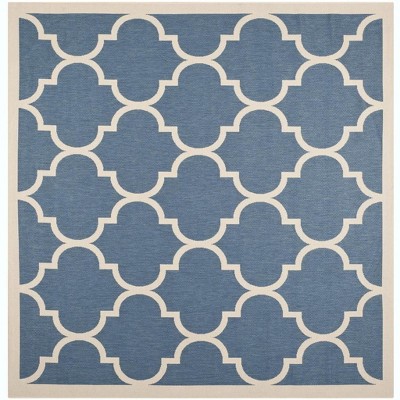 Courtyard CY6012 UV & Stain Resistant Non-Shedding Power Loomed Indoor/Outdoor Accent Rug - Blue/Beige - 4'x4' - Safavieh