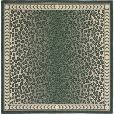Courtyard CY6012 UV & Stain Resistant Non-Shedding Power Loomed Indoor/Outdoor Area Rug - Dark Green/Ivory - 6'7"x6'7" - Safavieh