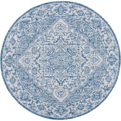 Courtyard CY6012 UV & Stain Resistant Non-Shedding Power Loomed Indoor/Outdoor Area Rug - Navy/Beige - 6'7" Round - Safavieh