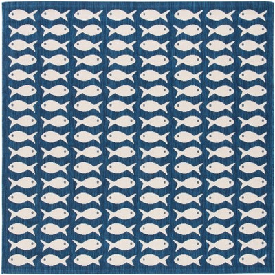 Courtyard CY6012 UV & Stain Resistant Non-Shedding Power Loomed Indoor/Outdoor Area Rug - Navy/Beige - 6'7"x6'7" - Safavieh