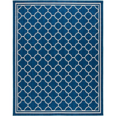 Courtyard CY6012 UV & Stain Resistant Non-Shedding Power Loomed Indoor/Outdoor Area Rug - Navy/Beige - 6'7"x9'6" - Safavieh