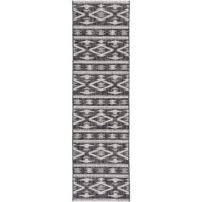 Courtyard CY6012 UV & Stain Resistant Non-Shedding Power Loomed Indoor/Outdoor Runner Rug - Black/Beige - 2'3"x8' - Safavieh