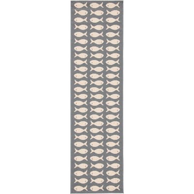 Courtyard CY6012 UV & Stain Resistant Non-Shedding Power Loomed Indoor/Outdoor Runner Rug - Dark Grey/Beige - 2'3"x12' - Safavieh