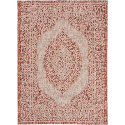 Courtyard CY6013 Power Loomed Indoor and Outdoor Area Rug - Aqua/Beige - 4'x5'7" - Safavieh