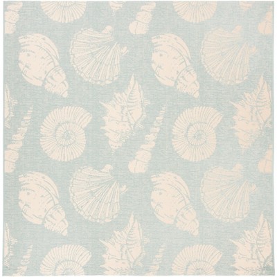 Courtyard CY6013 Power Loomed Indoor and Outdoor Area Rug - Aqua/Beige - 6'7"x6'7" - Safavieh