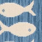 I love this rug! It’s the perfect size for my deck. It’s a slightly darker blue than the image but I still love it. It was a great price for the size and for the print.