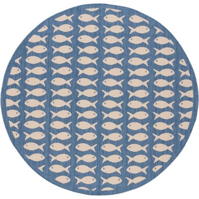 I love this rug! It’s the perfect size for my deck. It’s a slightly darker blue than the image but I still love it. It was a great price for the size and for the print.