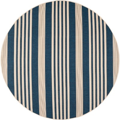 Courtyard CY6015 Power Loomed Indoor/Outdoor Area Rug - Navy/Beige - 7'10" Round - Safavieh.