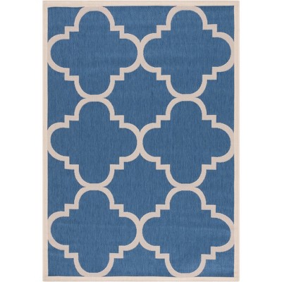 Courtyard CY6016 Power Loomed Indoor and Outdoor Area Rug - Blue/Beige - 4'x5'7" - Safavieh
