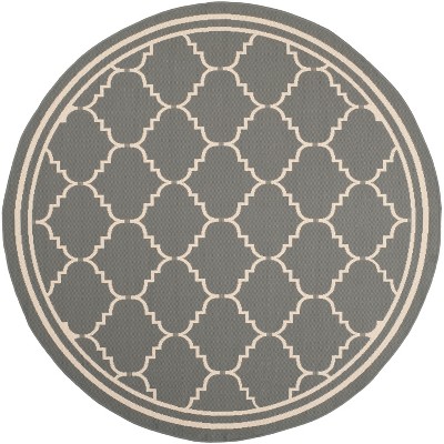 Courtyard CY6032 UV & Stain Resistant Non-Shedding Power Loomed Indoor/Outdoor Area Rug - Grey/Beige - 5'3" Round - Safavieh