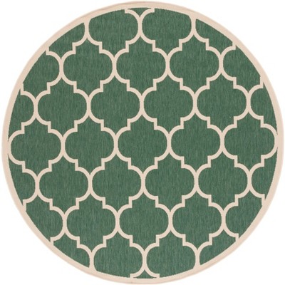 Courtyard CY6062 UV & Stain Resistant Non-Shedding Power Loomed Indoor/Outdoor Area Rug - Green/Beige - 6'7" Round - Safavieh