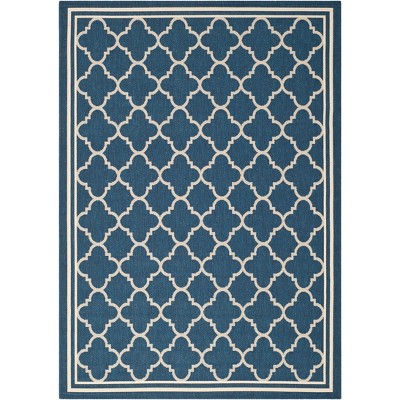 Courtyard CY6062 UV & Stain Resistant Non-Shedding Power Loomed Indoor/Outdoor Accent Rug - Beige/Blue - 4'x5'7" - Safavieh
