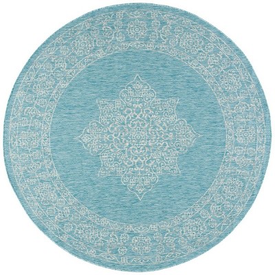Courtyard CY6062 UV & Stain Resistant Non-Shedding Power Loomed Indoor/Outdoor Area Rug - Grey/Bone - 6'7" Round - Safavieh